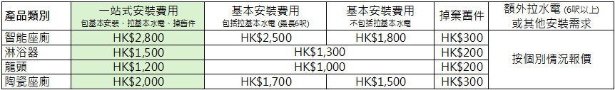 1. 顧客選購可提供安裝的產品,價格已包含產品價格及基本安裝服務費用。